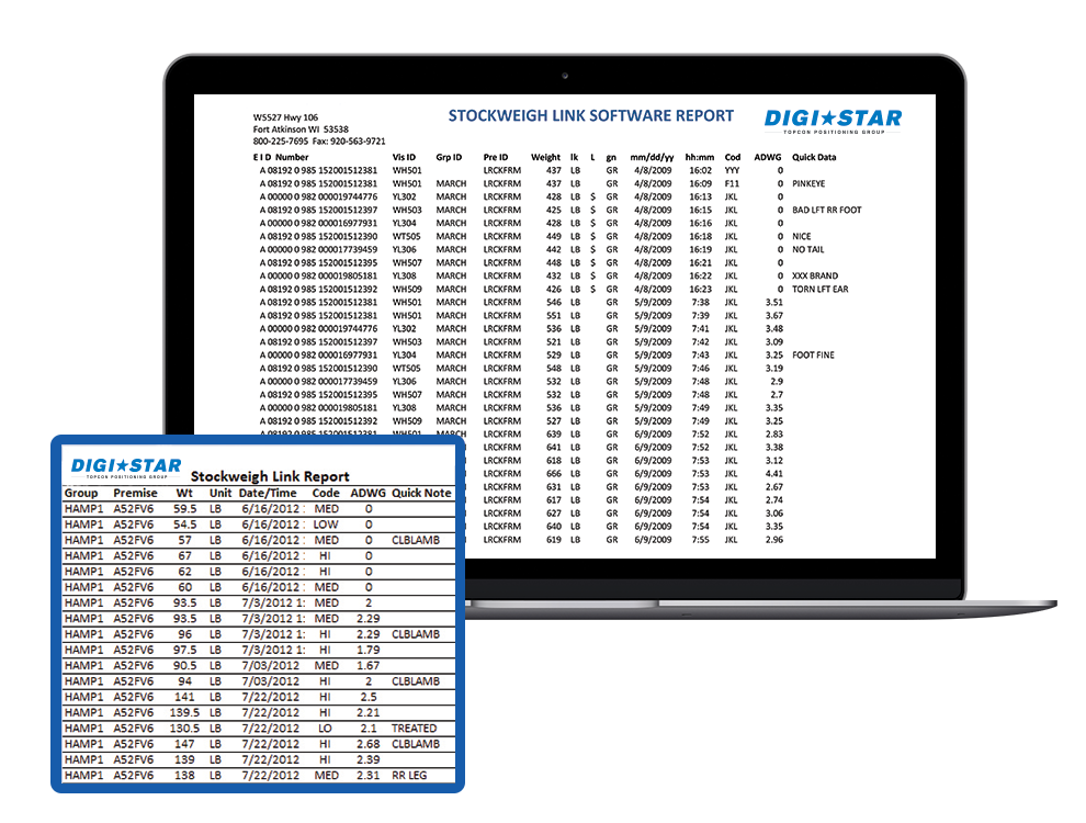 - StockWeigh Link (PC Software) offering easy export of data files (CSV format)