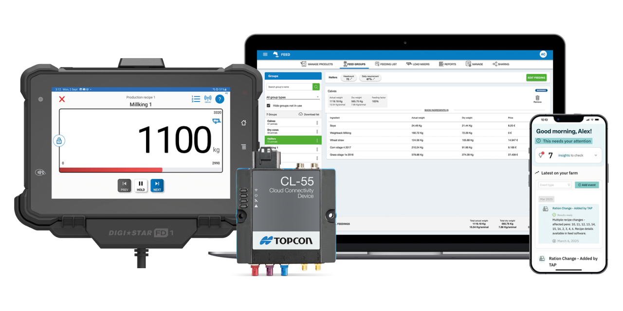 LIVERMORE, Calif. — 12 de marzo de 2025 — Topcon Agriculture anuncia la integración de su API TAP FEED con Connecterra. La empresa ha firmado un acuerdo con Connecterra para proporcionar a los ganaderos y profesionales de la agricultura capacidades mejoradas para el análisis y la integración de datos.